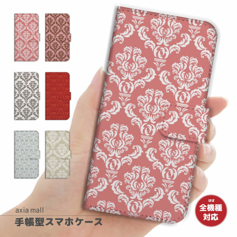 スマホケース 手帳型 アイフォン 全機種対応 iPhone SE 第2世代 11 Pro XR 8 7 XS Max ケース おしゃれ ダマスク デザイン damask 定番 柄 かわいい Xperia 1 Ace XZ3 Galaxy S10 S9 AQUOS sense カバー